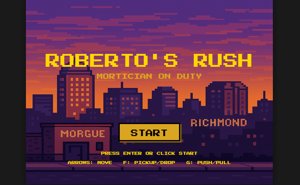 CONTROLS: Arrow Keys = Move | F = Pick Up/Drop Body | G = Push/Pull Gurney